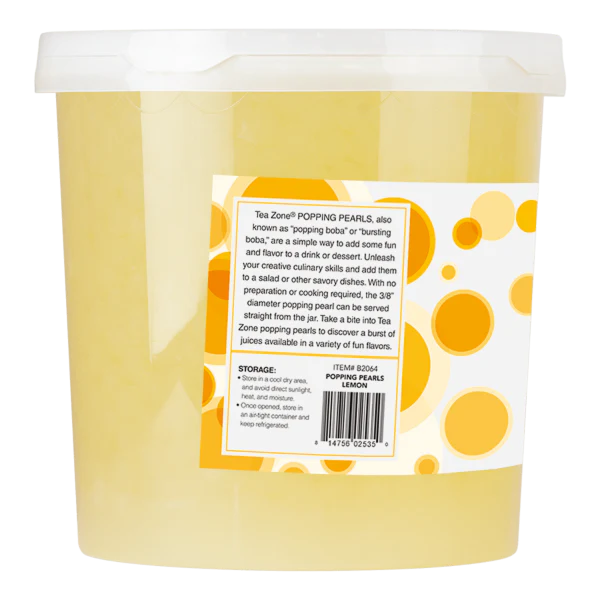 Add a spoonful of delicious tart Tea Zone Lemon Popping Pearls to your tea, cocktail, or dessert. Each bite is an explosion of juices that will make your mouth pucker.